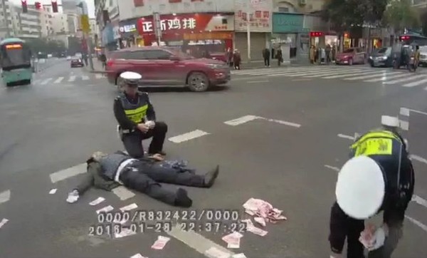 Một người đàn ông đã rút dao ra tự cắt cổ tay mình và miệng không ngừng hét lên: "Chết, phải chết, tôi phải chết đi", sau khi ném tiền ra đường với các tờ tiền có mệnh giá 100 tệ nằm rải rác trên mặt đường, khiến những người đi đường xung quanh đã nhanh chóng chạy lại và gọi cảnh sát để giúp đỡ.