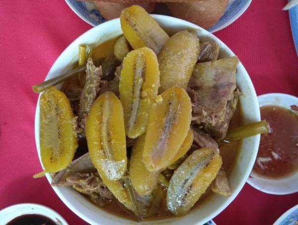 Món này có thể dùng ăn chơi, thức nhấm hoặc ăn với cơm trắng, bún tươi đều ngon miệng. Vị ngọt của thịt vịt hòa quyện với vị béo ngậy của nước cốt dừa, dẻo dai của củ mì và chuối sáp làm nên món cà ri đậm đà.