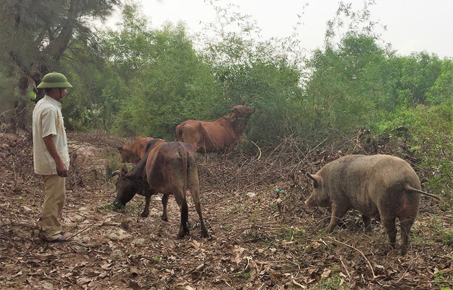 Lích theo đàn bò đi ăn ngoài đồi cát