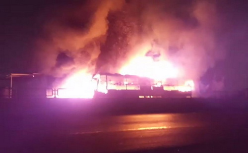 Xe khách cháy rực trong đêm. Ảnh: Phan Thành.