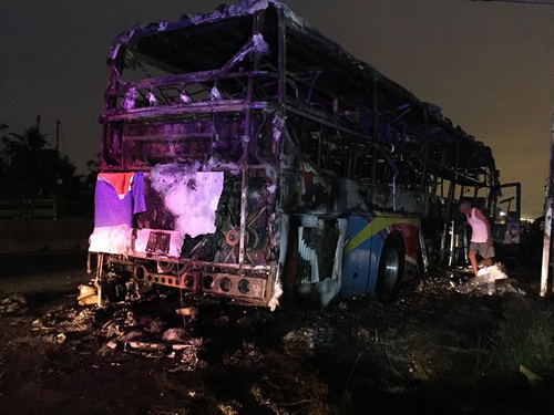 Cảnh sát PCCC Bình Thuận điều hàng chục chiến sĩ cùng 3 xe cứu hỏa đến hiện trường, dập tắt ngọn lửa. Hỏa hoạn không gây thương vong, song toàn bộ chiếc xe, tài sản hành khách cùng nhà dân bị thiêu rụi trong đêm.