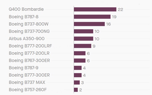 Số lượng máy bay Boeing trong phi đội của Ethiopian Airlines. Đồ họa: Atlas.