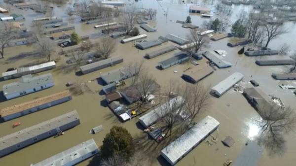 Lũ lụt từ sông Missouri đã được kích hoạt bởi cơn bão hồi tuần trước - cơn bão làm chết ít nhất 4 người, làm chết gia súc và đóng cửa hàng chục con đường trên một vùng rộng lớn ở Nebraska và Iowa. Thiệt hại về tài sản và tài chính đối với 2 bang Trung Tây theo dự báo sẽ là hơn 3 tỷ USD.