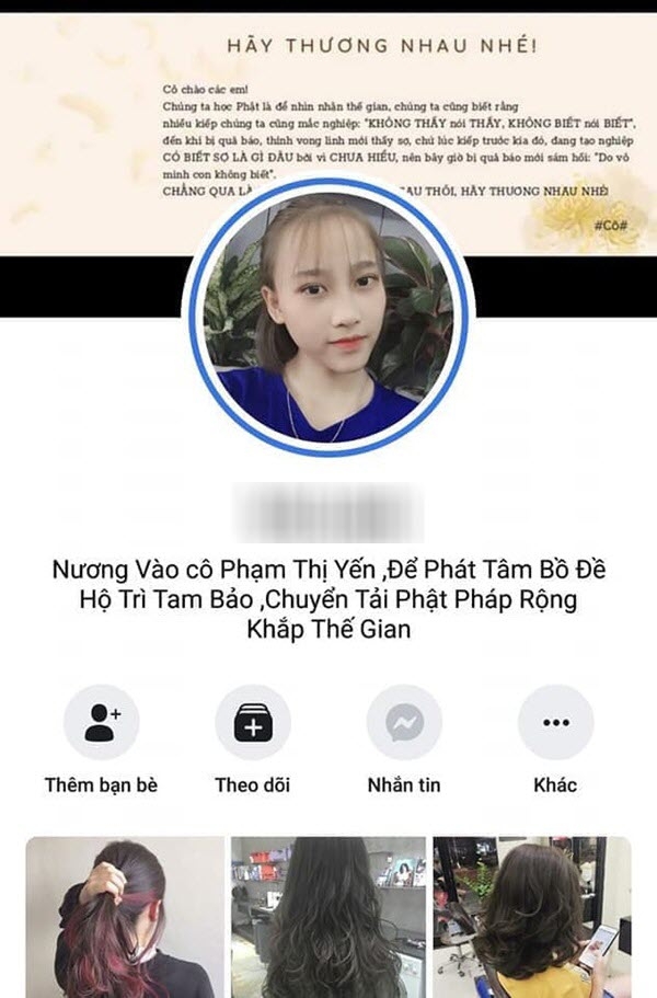 Trên Facebook cá nhân, Khánh Linh còn ghi chú thích: “Nương vào cô Phạm Thị Yến…” và công khai số điện thoại để người khác tiện liên hệ.