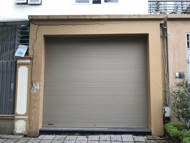 Đứng trong căn nhà số 1 TT35 (cạnh mặt đường 24m), chốc chốc đôi mắt chị Quyên lại nhìn theo những vết nứt nẻ khắp các bức tường, móng nhà rồi thở dài: "Gần một năm nay rồi chú ạ. Cả nhà tôi bây giờ nứt toác hết cả, móng nhà thì bị sụt xuống nhìn trơ cả bê tông bên trong. Bây giờ cánh cửa chính của ngôi nhà và cửa cuốn cũng không còn đóng mở được nữa".