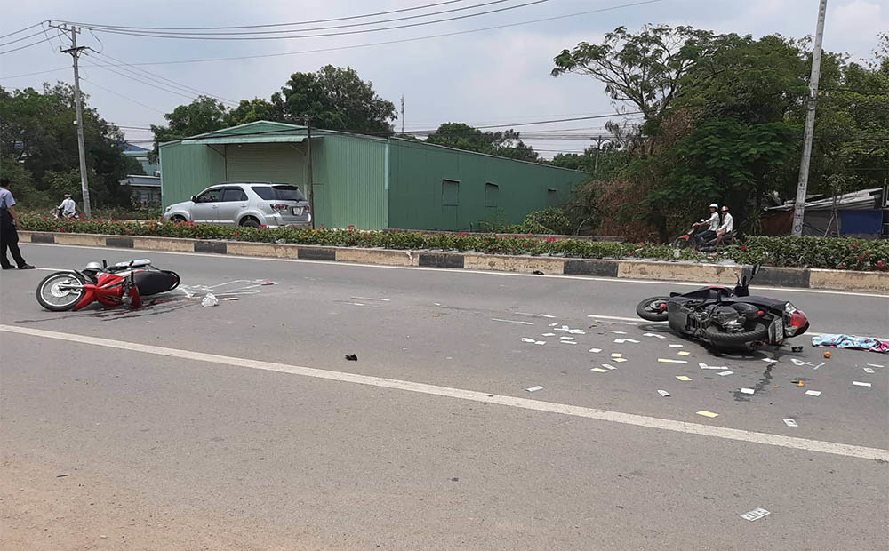 Một vụ tai nạn giao thông liên hoàn nghiêm trọng vừa xảy ra tại Bình Dương. Khi đó 3 xe máy chạy cùng chiều xảy ra va chạm khiến một phụ nữ ngã ra đường, đập đầu xuống đất tử vong. Có 3 người khác bị thương.