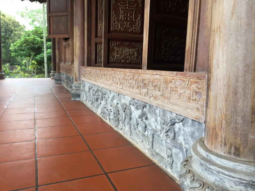 Gia chủ còn cầu kỳ đặt thợ ở Thanh Hoá xẻ đá làm một cái nền toàn bằng đá xanh, cao chừng 1,5m, trên đó có 9 bậc. Một tốp thợ cỡ chục người làm cật lực gần nửa tháng mới ráp những tảng đá xẻ lớn vào nhau và khít đến độ không có kẽ nào con kiến, con mối có thể chui lọt.