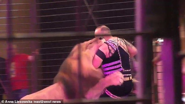 Trong khi đang diễn cùng một con sư tử trước nhiều khán giả ở Ukraine thì bỗng dưng con sư tử này trở nên hung dữ lạ thường và tấn công chính huấn luyện viên xiếc thú của mình.