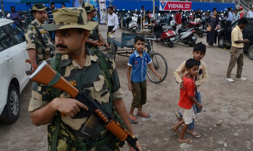 Binh sĩ thuộc Lực lượng Biên phòng Ấn Độ (BSF) tuần tra tại bang Tây Bengal hôm 9/4 trước thềm tổng tuyển cử. Ảnh: AFP.