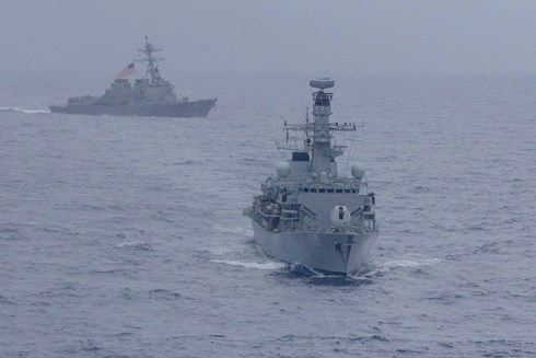 Tàu khu trục USS McCampbell của hải quân Mỹ và tàu khu trục HMS Argyll của hải quân Hoàng gia Anh tập trận ở Biển Đông hồi tháng 1/2019.