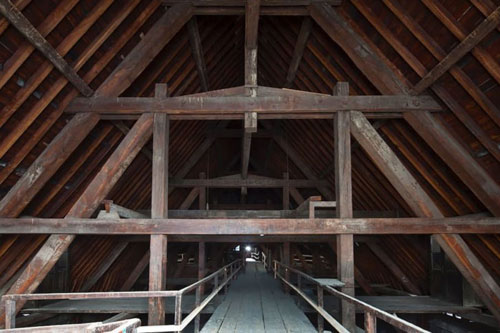 Các thanh gỗ lớn trên mái vòm nhà thờ Đức Bà Paris được cho là làm từ những cây gỗ 300-400 năm tuổi. Ảnh: CNN.