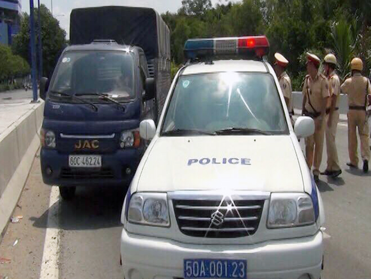 Thấy bóng cảnh sát, xe tải vừa nhận hàng cùng ôtô 7 chỗ tăng ga tháo chạy trên đại lộ Võ Văn Kiệt, hướng về hầm Thủ Thiêm (quận 1). Lực lượng CSGT thông báo các đơn vị phối hợp, đồng thời truy đuổi gần đến cửa hầm thì chặn được hai xe.
