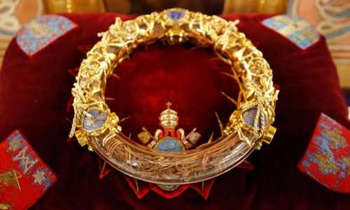 Mão gai trên đầu Chúa được trưng bày tại nhà thờ Đức Bà trước vụ hỏa hoạn. Ảnh: UIG.