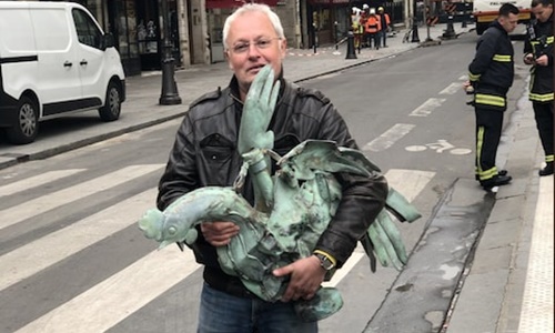 Hôm 16/4, Didier đang làm việc cùng các nhà phục chế khác thì họ tìm thấy bức tượng gà trống của Nhà thờ Đức Bà. Bức tượng có giá trị vô cùng quan trọng bởi nó chứa ba thánh tích, trong đó có một mảnh của Mão gai cùng thánh tích của Thánh Denis và Thánh Genevieve, hai vị thánh bảo hộ người dân Pháp và thủ đô Paris. Tượng gà trống vốn ngự trên tháp nhọn nhà thờ, tuy nhiên, khi ngọn tháp bị thiêu rụi và sụp đổ, bức tượng rời ra và rơi xuống khu vực cách xa đám cháy nên không hư hại quá nhiều.
