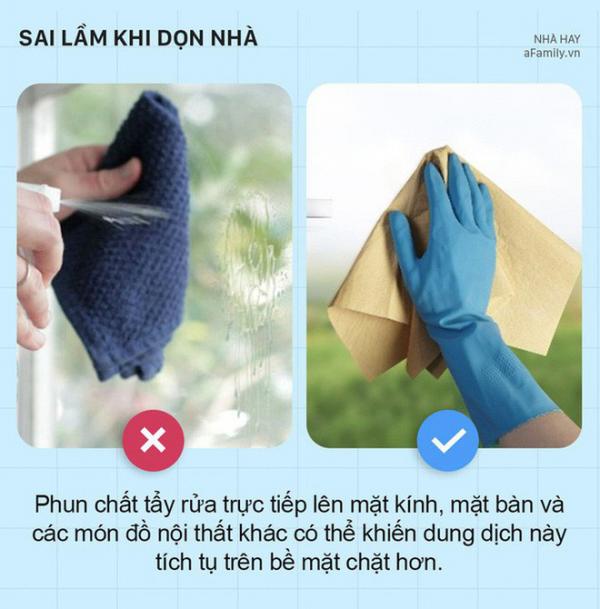 Có một sự thật mà không phải ai cũng biết đó là việc bạn phun chất tẩy rửa trực tiếp lên mặt kính, mặt bàn và các món đồ nội thất khác có thể khiến dung dịch này tích tụ trên bề mặt chặt hơn.