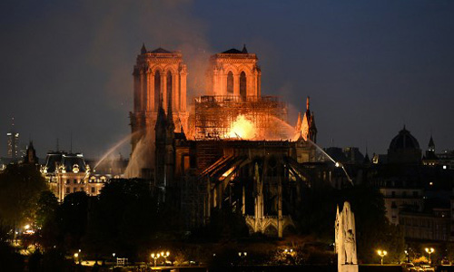Hiện trường vụ cháy Nhà thờ Đức Bà Paris, Pháp hôm 15/4. Ảnh: AFP.