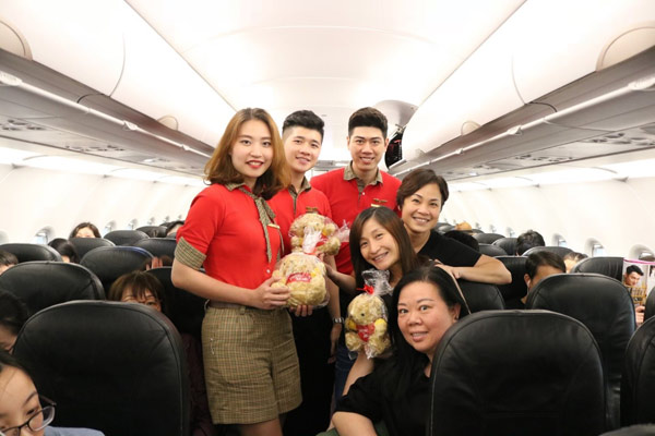 Trên chuyến bay khai trương, hành khách bất ngờ nhận được những quà tặng xinh xắn từ Vietjet.