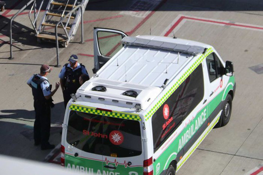 Xe cứu thương có mặt ngay khi máy bay của Hãng AirAsia đến sân bay Perth. Ảnh: ABC