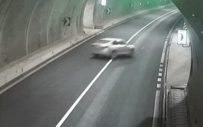 Đoạn video cho thấy một chiếc xe ô tô màu trắng đang di chuyển trong đường hầm thì đột nhiên mất lái và đâm thẳng vào tường hầm với tốc độ cao. Chiếc xe bị lật ngửa, nổ tung và biến dạng nghiêm trọng.
