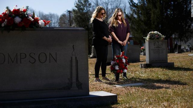 Bà Alba và Kristin Rowell, bạn gái của Joseph đến thăm mộ anh.