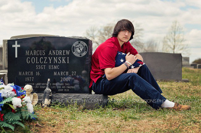 Năm 2007, lính hải quân Marcus Golczynski của quân đội Mỹ đã không may tử nạn trong lúc làm nhiệm vụ tại chiến trường Iraq. Di hài của anh sau đó được đưa về giao lại cho người thân tại Tennessee. Thời điểm đó, Christian chỉ mới 8 tuổi, đứng ra nhận lá cờ Mỹ, di vật duy nhất còn sót lại của Marcus, tại lễ tang của bố. Khoảnh khắc đứa trẻ kiềm chế nỗi đau và nuốt nước mắt vào tim được nhiếp ảnh gia Aaron Thompson ghi lại. Bức ảnh sau đó được công bố đã gây xúc động mạnh trên toàn thế giới vì nó là minh chứng rõ rệt nhất cho sự tàn khốc mà những cuộc chiến tranh phi nghĩa gây ra. Dù cho chiến tranh có qua đi hay không thì nó vẫn là nỗi ám ảnh dai dẳng bấu víu vào cuộc đời con người.