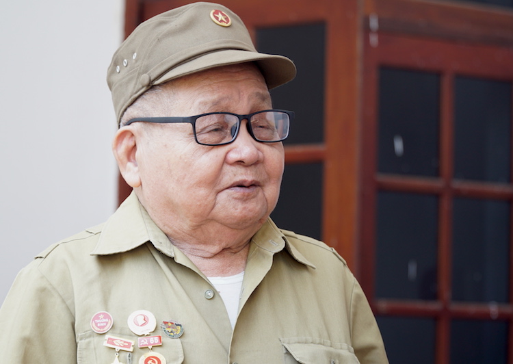 Cựu binh Nguyễn Hữu Chấp (Đại đội 290, Tiểu đoàn 166. Trung đoàn 209, Đại Đoàn 312) tại Điện Biên ngày 25/4. Ảnh: Hoàng Thuỳ