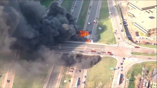 Không may sau cú va chạm mạnh, nhiều vụ nổ đã xảy ra và tạo thành đám cháy lớn do rò rỉ nhiên liệu. Tình hình căng thẳng đến mức kỹ sư trưởng của Bộ Giao thông Vận tải Colorado cho biết nhiệt độ trên đường cao tốc tăng vọt lên hơn 2.500 độ F (1.371 độ C).