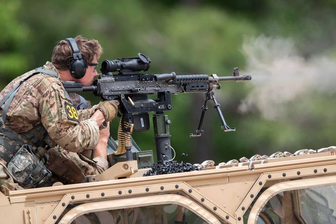 Trong ảnh, một ứng viên tham gia nội dung bắn súng máy gắn trên xe bọc thép.