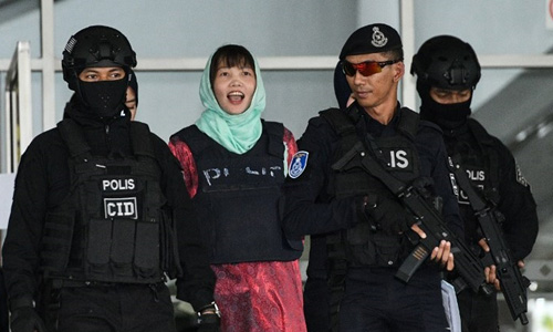 Công tố viên Malaysia hôm 1/4 đề nghị truy tố Đoàn Thị Hương tội "cố ý gây thương tích bằng hung khí hoặc cách thức nguy hiểm" thay cho tội giết người. Hương nhận tội và bị kết án 3 năm 4 tháng tù. Nghi phạm Aisyah trước đó được công tố viên Malaysia rút lại cáo buộc giết người và phóng thích mà không nêu lý do.