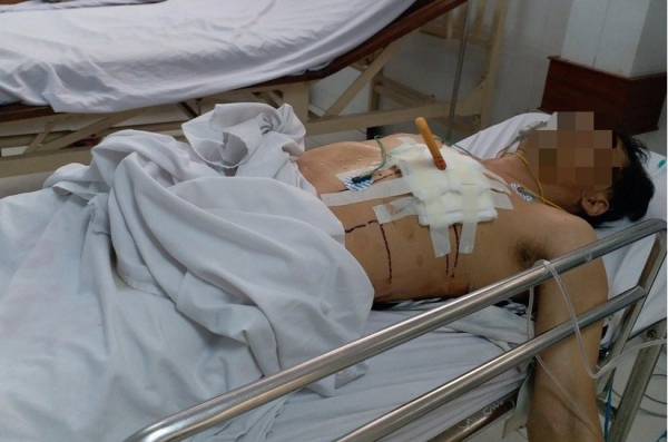 Bệnh nhân là anh N.V.Q (SN 1980, ở thị trấn Hà Lam, huyện Thăng Bình) nhập viện trong tình trạng vô cùng nguy kịch, một lưỡi dao đâm sâu và còn nằm trong lồng ngực bệnh nhân. Ngọn dao thấu tim khiến tim mạch trụy do bị chèn ép cấp. Ngay lập tức, bệnh nhân Q được chuyển qua khoa Ngoại tiết niệu - Lồng ngực để tiến hành gây mê và phẫu thuật cấp cứu.
