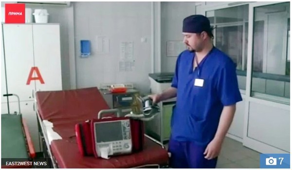 Bác sĩ Dmitry Krivkov với máy khử rung tim. Ảnh The Sun.
