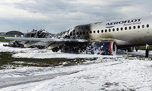 Máy bay Sukhoi Superjet SSJ-100 của hãng hàng không Aeroflot ngày 5/5 bốc cháy sau khi hạ cánh khẩn cấp xuống sân bay quốc tế Sheremetyevo ở phía bắc thủ đô Moskva, khiến 41 trên tổng số 78 người trên khoang thiệt mạng.