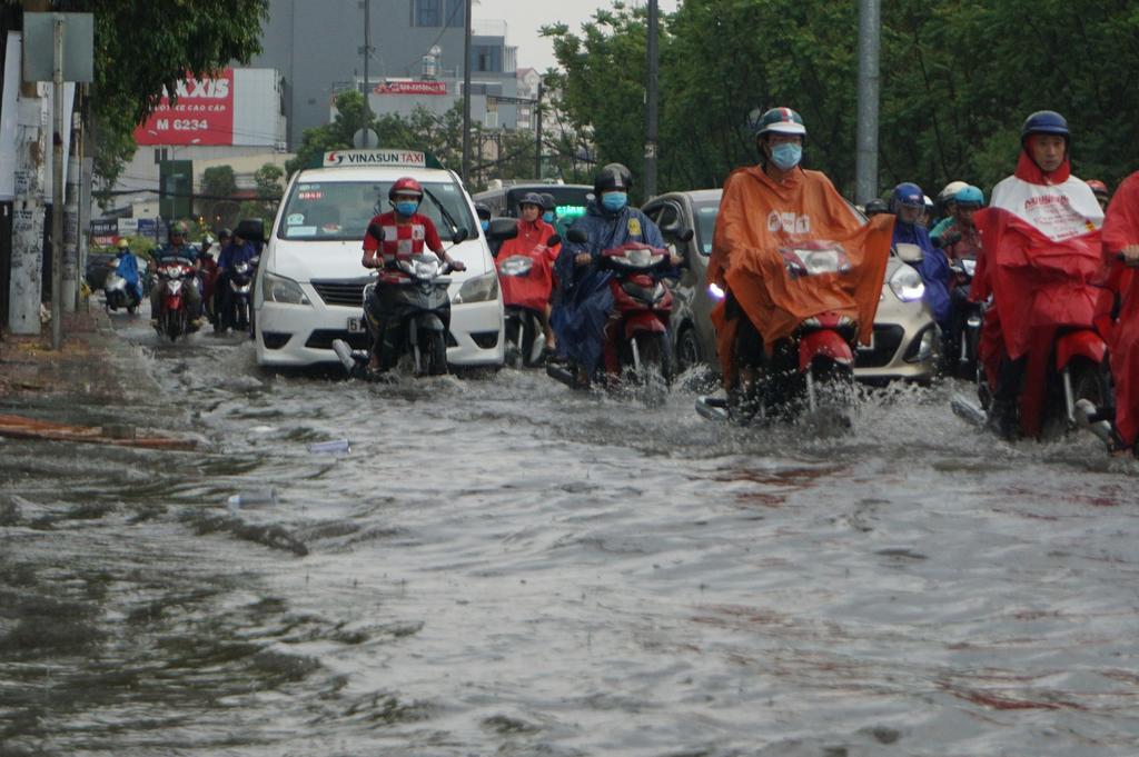 Ở nhiều nhiều khu vực, mưa khá nặng hạt và gây ngập cục bộ ở nhiều đoạn. Trên đường Nguyễn Hữu Cảnh, đoạn dưới chân cầu vượt (quận Bình Thạnh), mưa lớn khiến nước ngập hơn nửa bánh xe, nhiều xe máy đi qua bị chết máy khiến người dân phải dắt bộ.