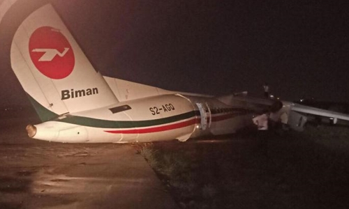 Chuyến bay BG060 của Biman Bangladesh Airlines chở 33 hành khách trượt khỏi đường băng khi hạ cánh ở sân bay Yangon, Myanmar vào khoảng 18h20 tối (18h50 giờ Hà Nội). Nhà báo Hnin Yadana Zaw viết trên Twitter rằng máy bay "vỡ thành ba mảnh" và nguyên nhân sự cố là mưa lớn.