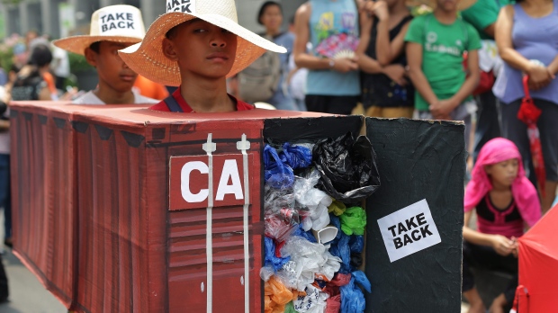 Từ năm 2013 đến 2014, Canada đã chuyển hơn 100 container rác thải gia đình, bao gồm các chai nhựa và túi nilon, giấy báo và tã giấy đã qua sử dụng tới Philippines. Quan chức nước này cho biết những thùng container được khai báo là vật liệu nhựa tái chế của một công ty tư nhân.