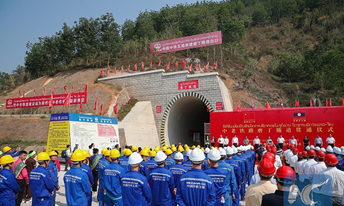 Lễ thông xe qua hầm Boten, bắc Lào thuộc dự án đường sắt Trung Quốc-Lào ngày 21/3. Ảnh: Xinhua