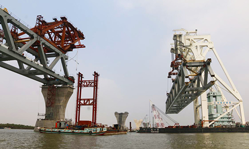 Công trường xây dựng cầu Padma ở Bangladesh ngày 21/2. Ảnh: Xinhua