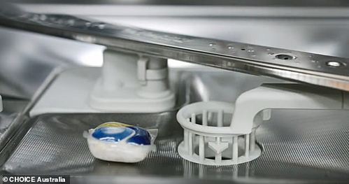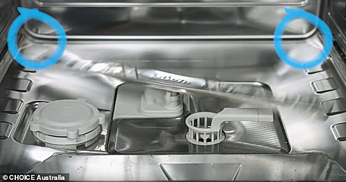 Cánh tay phun nước đôi khi có thể bỏ sót các góc máy rửa bát, nên bát đũa xếp ở rìa máy sẽ được làm sạch ít nhất. Ảnh: Choice Australia.