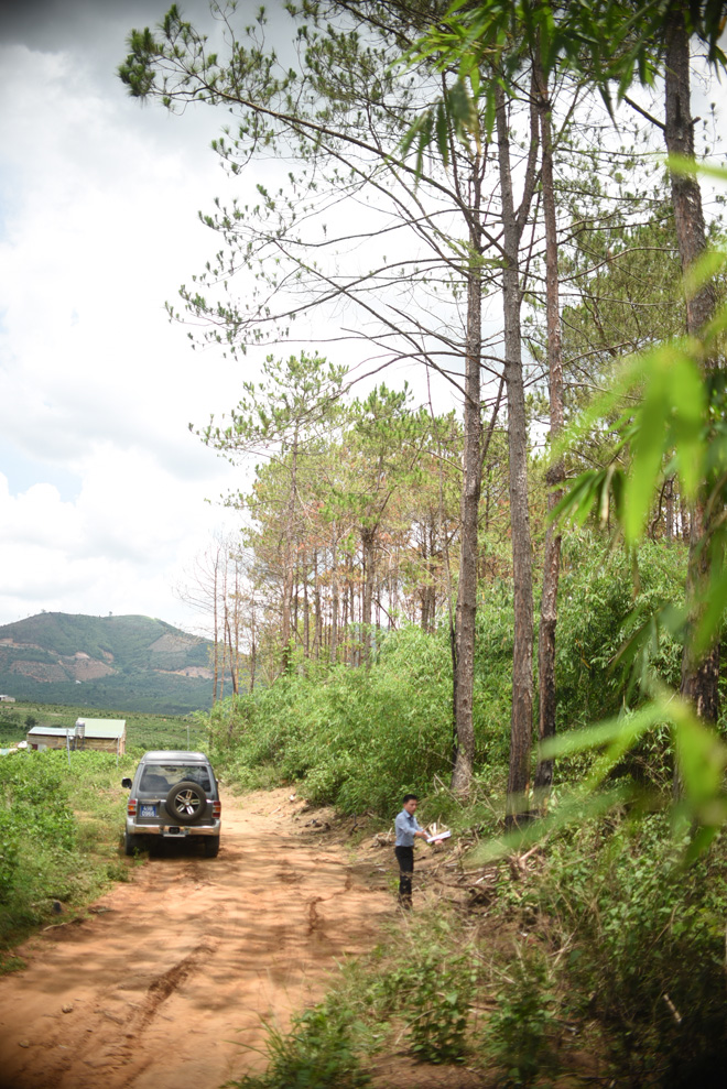 Khu rừng thông rộng 10ha bị đầu độc là một trong 2 khoảnh rừng còn sót lại tại khu vực này - cả hai khoảnh rừng đều nằm lọt thỏm giữa những vườn cà phê xanh mướt.