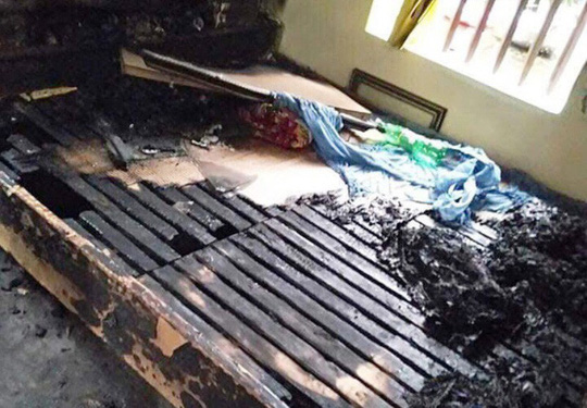 Khi thấy lửa cháy, ông L. đã lao vào cứu bà vợ, đồng thời hô hoán làng xóm hỗ trợ đưa đi cấp cứu. Hậu quả, bà H. bị bỏng nặng, được đưa đi cấp cứu tại Bệnh viện Bỏng Trung ương trong tình trạng nguy kịch.