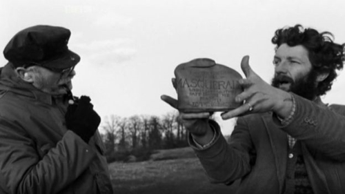 Kit Williams (phải) trao chiếc hộp chứa thỏ vàng cho Ken Thomas năm 1982. Ảnh: BBC.