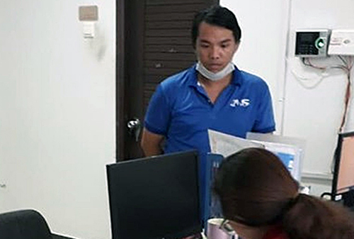 Anh Hiền mang tiền đến ban quản lý chung cư nhờ trả. Ảnh: Huy Đoan.
