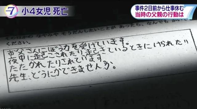 Trong thư viết: "Cháu đã nói dối việc bị cha đánh. Xin đừng đến gặp cháu, cháu không muốn gặp nhân viên Trung tâm phúc lợi trẻ em". Hitoshi Nihei, người đứng đầu Trung tâm phúc lợi trẻ em Kashiwa, đã công bố bức thư tại một cuộc họp báo vào ngày 5/2.