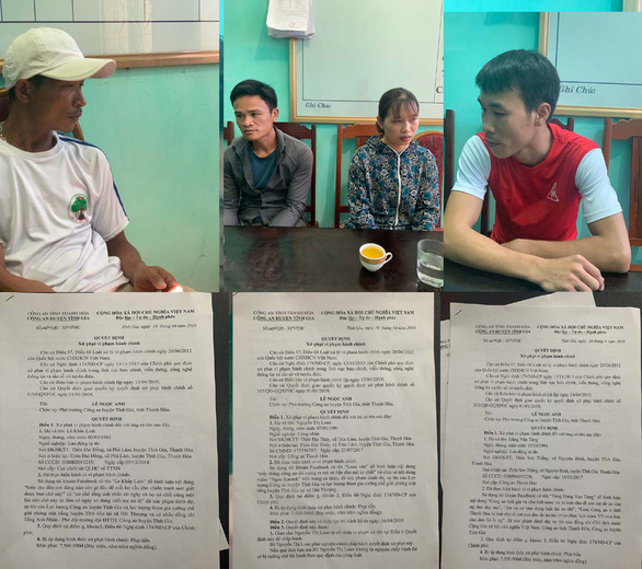 Bốn công dân vừa bị Công an huyện Tĩnh Gia xử phạt hành chính gồm: Lê Quang Cường (40 tuổi, trú tại xã Hải Yến), Nguyễn Thị Loan (28 tuổi, trú tại xã Trúc Lâm), Lê Khắc Linh (37 tuổi, trú tại xã Phú Lâm) và Đặng Nguyên Tùng (25 tuổi, trú tại xã Nguyên Bình) đều huyện Tĩnh Gia; mỗi người bị phạt 7,5 triệu đồng vì vi phạm hành chính trong lĩnh vực bưu chính viễn thông, công nghệ thông tin và tần số vô tuyến điện.