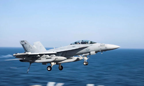Tiêm kích F/A-18F cất cánh từ tàu sân bay USS Abraham Lincoln trên Biển Arab hôm 22/5. Ảnh: Reuters.