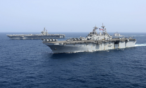 Chiến hạm Mỹ diễn tập trên Biển Arab gần Iran hôm 18/5. Ảnh: US Navy.