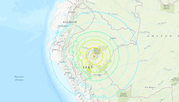 Theo Cơ quan Khảo sát Địa chất Mỹ (USGS), trận động đất xảy ra lúc 14h41 ngày 26/5 (giờ Việt Nam), tâm chấn động đất ở độ sâu gần 110km, cách thị trấn Moyobamba, thủ phủ của vùng San Martín khoảng 180km về phía đông.