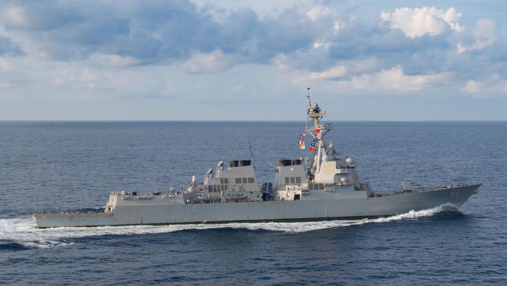 Khu trục hạm tên lửa dẫn đường USS Preble (DDG 88) của Mỹ đi qua Ấn Độ Dương ngày 29/03/2018. Morgan K. Nall/U.S. Navy/Handout via REUTERS