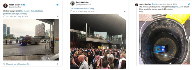 Theo đó, một chiếc Huawei Mate 20 Pro đã nóng lên rồi phát nổ tại rạp Lyric Theatre tại Lowry, thành phố Salford, nguyên nhân được là do lỗi về pin. Vụ việc này xảy ra trong một buổi biểu diễn của diễn viên hài Jason Manford, mà anh gọi đùa là 'cháy rất nhiệt'.