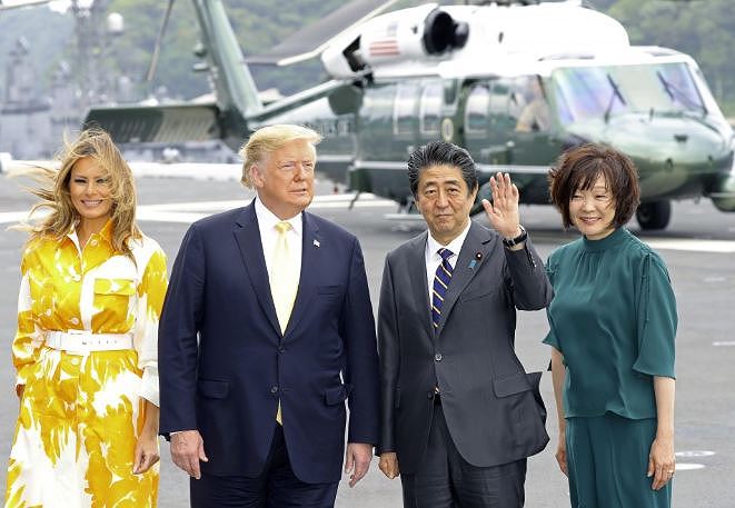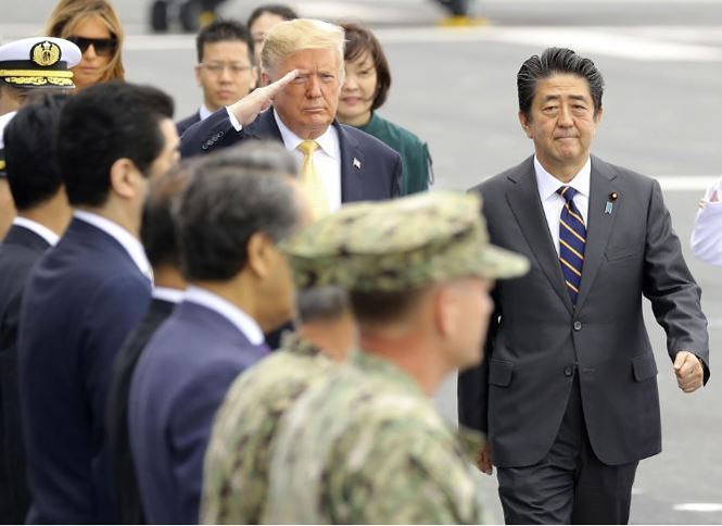 Thủ tướng Nhật Bản Shinzo Abe và tổng thống Mỹ Donald Trump hôm thứ Ba đã đến thăm tàu khu trục mang trực thăng Kaga của hải quân Nhật Bản tại căn cứ ở Yokosuka, phía nam Tokyo, để thể hiện mối quan hệ gắn bó giữa hai đồng minh.